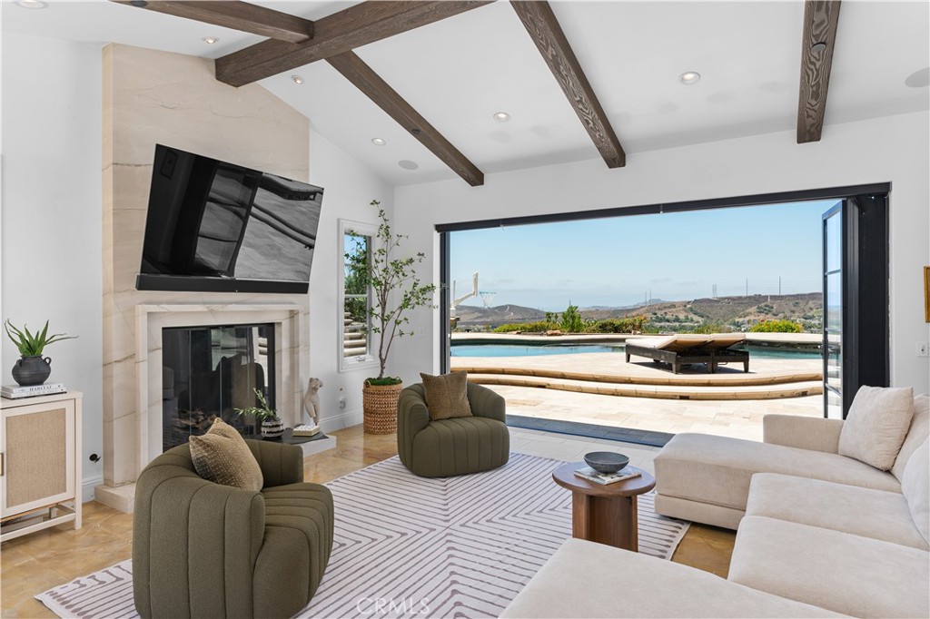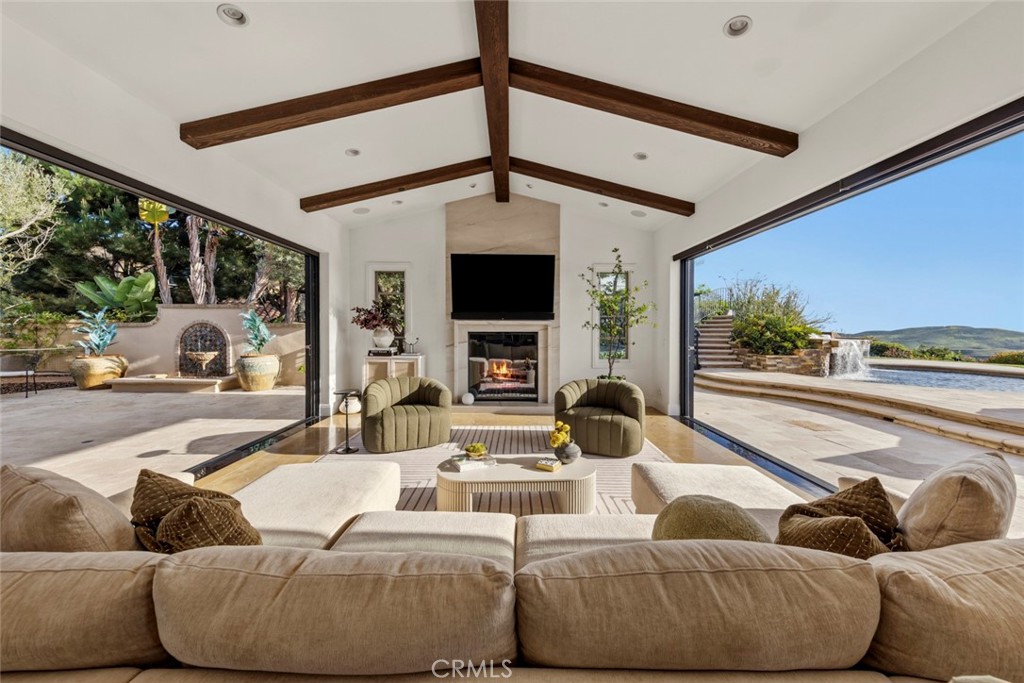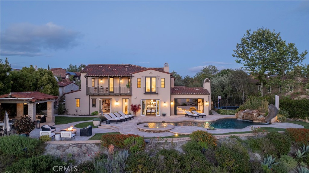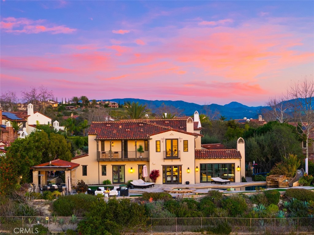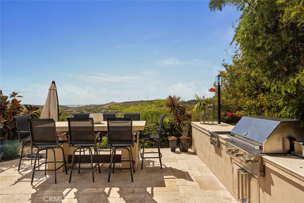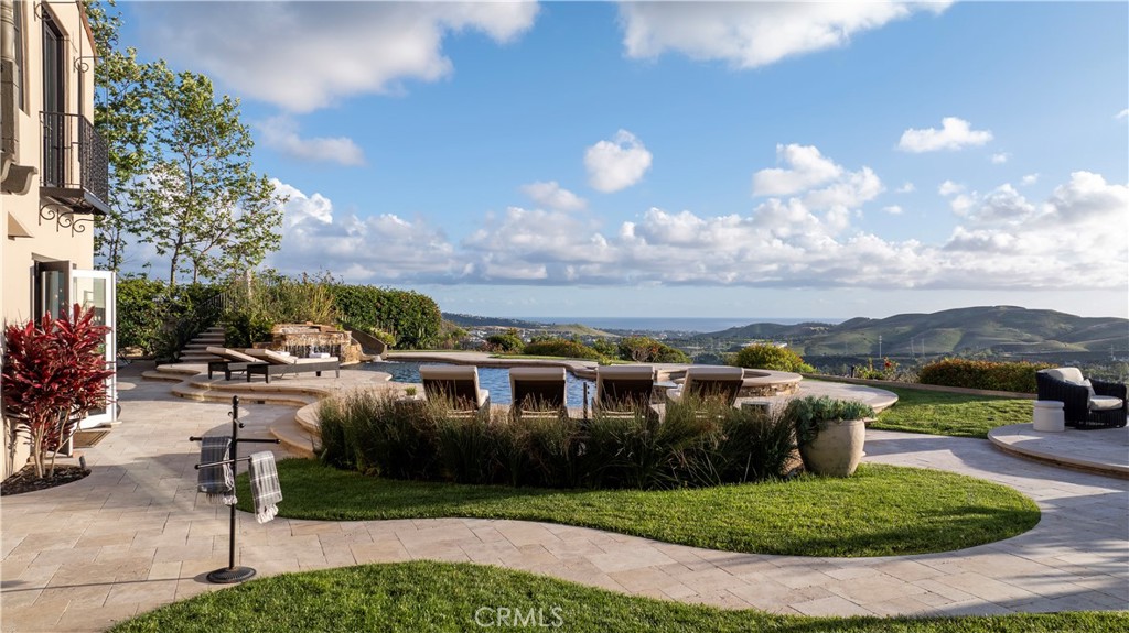 A rare masterpiece perched above the Pacific, this extraordinary estate commands unparalleled panoramic ocean, coastline, and canyon views from one of the most coveted addresses in San Clemente. Set on a private, pie-shaped lot along a premier cul-de-sac within Talega's exclusive gated Lucia enclave, with private park access and beaches just minutes away, this is a once-in-a-generation opportunity to own over 6,000 square feet of architectural grandeur where every room is a celebration of light, space, and vista. A soaring, circular foyer sets the tone, with Brazilian marble floors flowing through gracious entertaining spaces. The formal dining room is served by a temperature-controlled 1,000-bottle wine cellar and a bespoke speakeasy bar. In the great room, vaulted open-beamed ceilings and fireplace open to a reimagined gourmet kitchen featuring a dramatic 17-foot quartz island, Sub-Zero and Thermador appliances, and eat-in dining space. Expansive 15-foot LaCantina doors dissolve the boundary between indoors and out, drawing the eye across endless ocean views and a beautifully remodeled courtyard. A main-level suite with private exterior access is the perfect option for multi-generational living, a second primary suite, or luxurious guest quarters. Dual laundry rooms bring convenience to every floor. Upstairs, four bedroom suites offer private baths and custom closets. The primary suite is a sanctuary, featuring an exclusive view deck, fireplace retreat, dual walk-in closets, and a spa-like bath with floor-to-ceiling quartz rainfall shower. An office with loggia and bonus room with deck complete the upper level, accented by custom window treatments and Juliet balconies. Outside, the grounds rival a private resort. An elevated saltwater pool and spa with rock waterslide are surrounded by an expansive travertine sundeck, a fire pit with built-in dining, full outdoor kitchen, shaded cabana with smart TV, and a fenced dog run, all framed by signature panoramic views. Notable upgrades include a Ring security and alarm system, reverse osmosis kitchen filtration, and whole-home water softener. Talega's resort-caliber amenities are moments away, including 19+ miles of trails, the Swim and Athletic Club, pools, tennis, parks, and the Fred Couples-designed Talega Golf Course, with top-rated Capistrano Unified schools, beaches, and shopping all within easy reach. A true estate property where world-class views, masterful design, and an unmatched location converge.