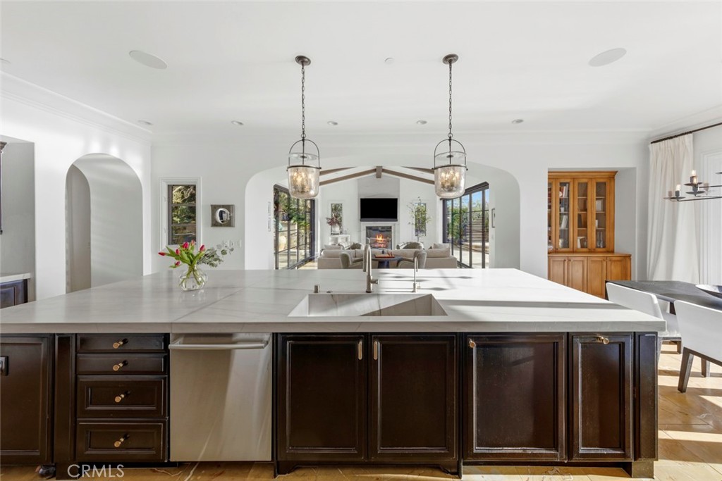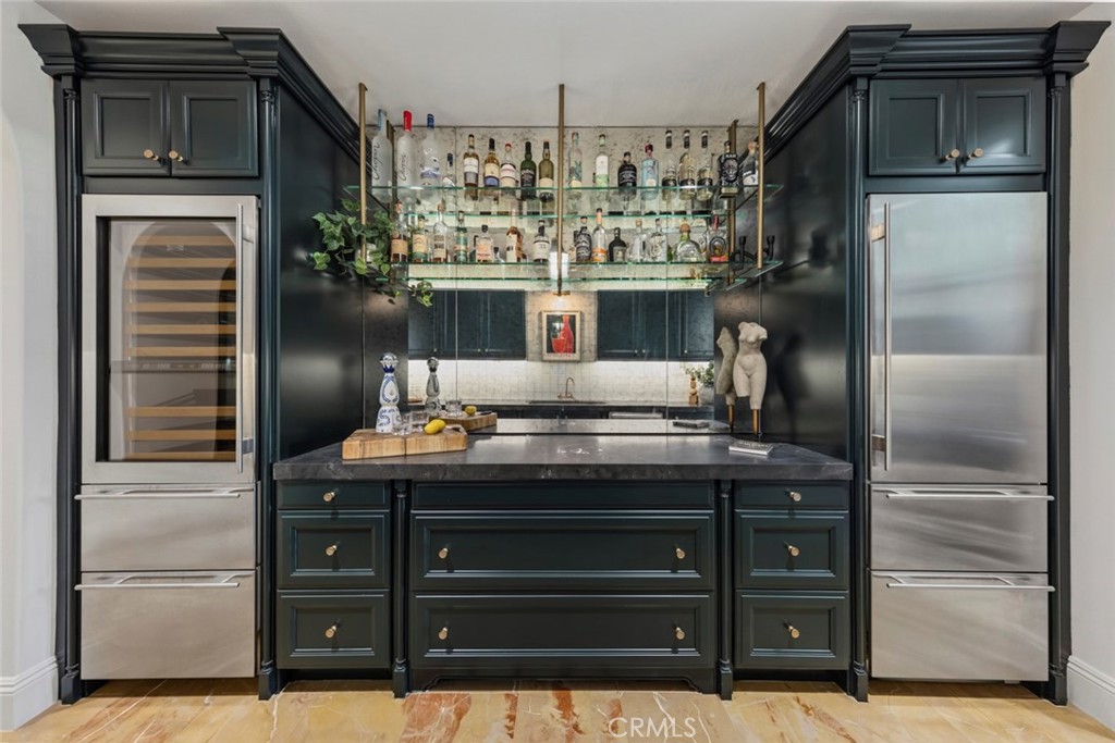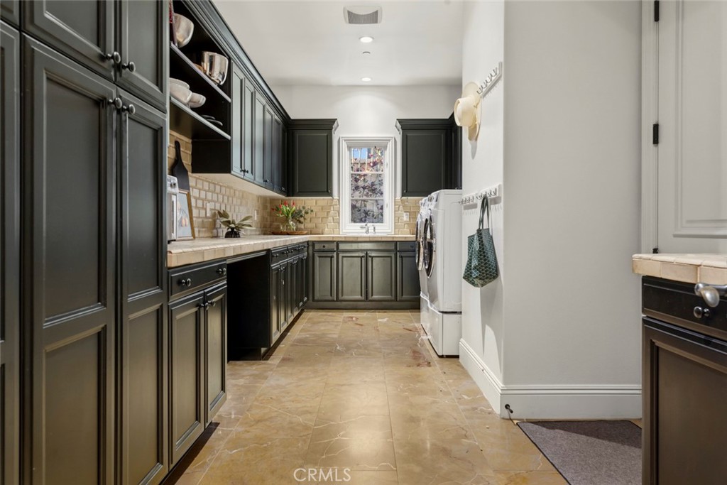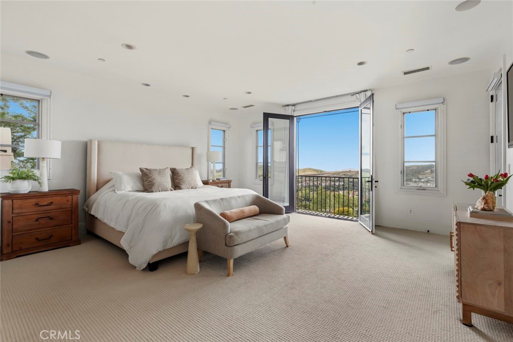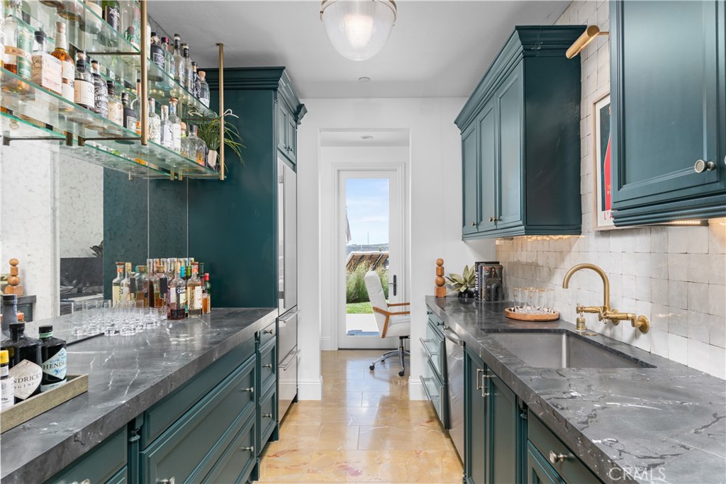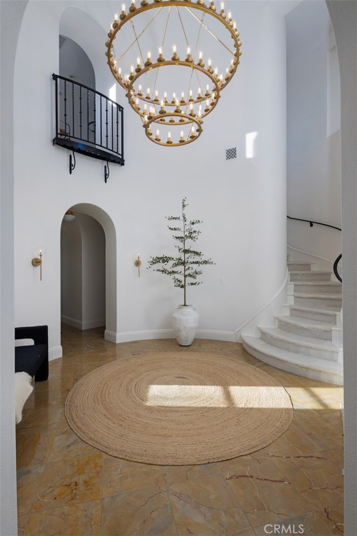 A rare masterpiece perched above the Pacific, this extraordinary estate commands unparalleled panoramic ocean, coastline, and canyon views from one of the most coveted addresses in San Clemente. Set on a private, pie-shaped lot along a premier cul-de-sac within Talega's exclusive gated Lucia enclave, with private park access and beaches just minutes away, this is a once-in-a-generation opportunity to own over 6,000 square feet of architectural grandeur where every room is a celebration of light, space, and vista. A soaring, circular foyer sets the tone, with Brazilian marble floors flowing through gracious entertaining spaces. The formal dining room is served by a temperature-controlled 1,000-bottle wine cellar and a bespoke speakeasy bar. In the great room, vaulted open-beamed ceilings and fireplace open to a reimagined gourmet kitchen featuring a dramatic 17-foot quartz island, Sub-Zero and Thermador appliances, and eat-in dining space. Expansive 15-foot LaCantina doors dissolve the boundary between indoors and out, drawing the eye across endless ocean views and a beautifully remodeled courtyard. A main-level suite with private exterior access is the perfect option for multi-generational living, a second primary suite, or luxurious guest quarters. Dual laundry rooms bring convenience to every floor. Upstairs, four bedroom suites offer private baths and custom closets. The primary suite is a sanctuary, featuring an exclusive view deck, fireplace retreat, dual walk-in closets, and a spa-like bath with floor-to-ceiling quartz rainfall shower. An office with loggia and bonus room with deck complete the upper level, accented by custom window treatments and Juliet balconies. Outside, the grounds rival a private resort. An elevated saltwater pool and spa with rock waterslide are surrounded by an expansive travertine sundeck, a fire pit with built-in dining, full outdoor kitchen, shaded cabana with smart TV, and a fenced dog run, all framed by signature panoramic views. Notable upgrades include a Ring security and alarm system, reverse osmosis kitchen filtration, and whole-home water softener. Talega's resort-caliber amenities are moments away, including 19+ miles of trails, the Swim and Athletic Club, pools, tennis, parks, and the Fred Couples-designed Talega Golf Course, with top-rated Capistrano Unified schools, beaches, and shopping all within easy reach. A true estate property where world-class views, masterful design, and an unmatched location converge.